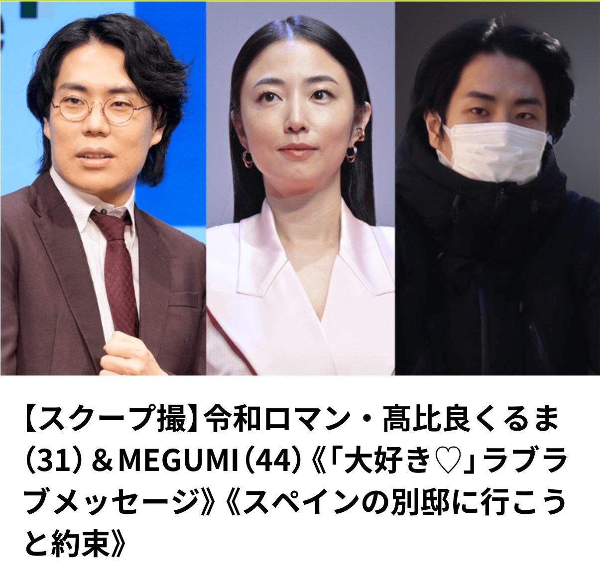 【スクープ撮】令和ロマン・髙比良くるま(31)&MEGUMI(44)《「大好き♡」ラブラブメッセージ》《スペインの別邸に行こうと約束》