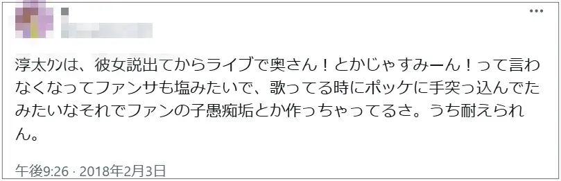 またこの投稿と同じ時期に中間淳太さんのファンサービスが塩対応になったと言われており、ファンは「彼女が出来たから塩対応になったのでは?」と推測するようになりました。