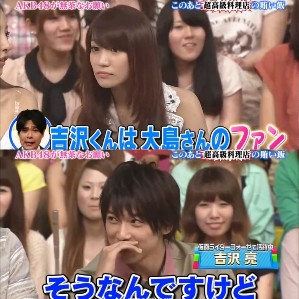 吉沢さんが思い切って気持ちを伝えると、大島優子さんは「ありがとう♡」と笑顔で返し、吉沢さんが本気で照れてしまうほど和やかな雰囲気に。