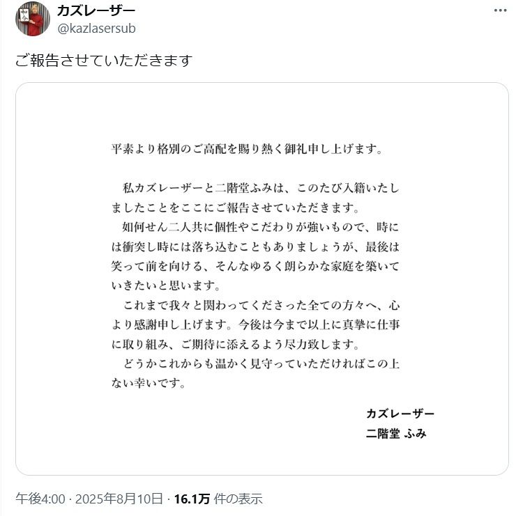 それを裏付けるように、二階堂ふみさんは2025年8月にカズレーザーさんとの結婚を発表しており、仲野太賀さんとは恋愛とは別の、純粋な友情関係を築いていたことがはっきりしています。