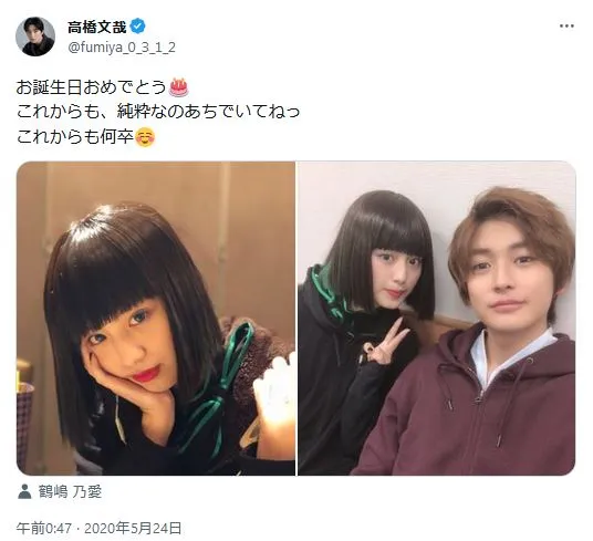 高橋文哉さんの彼女として噂になった12人目の女性は、モデル・女優として活躍する鶴嶋乃愛さんです。